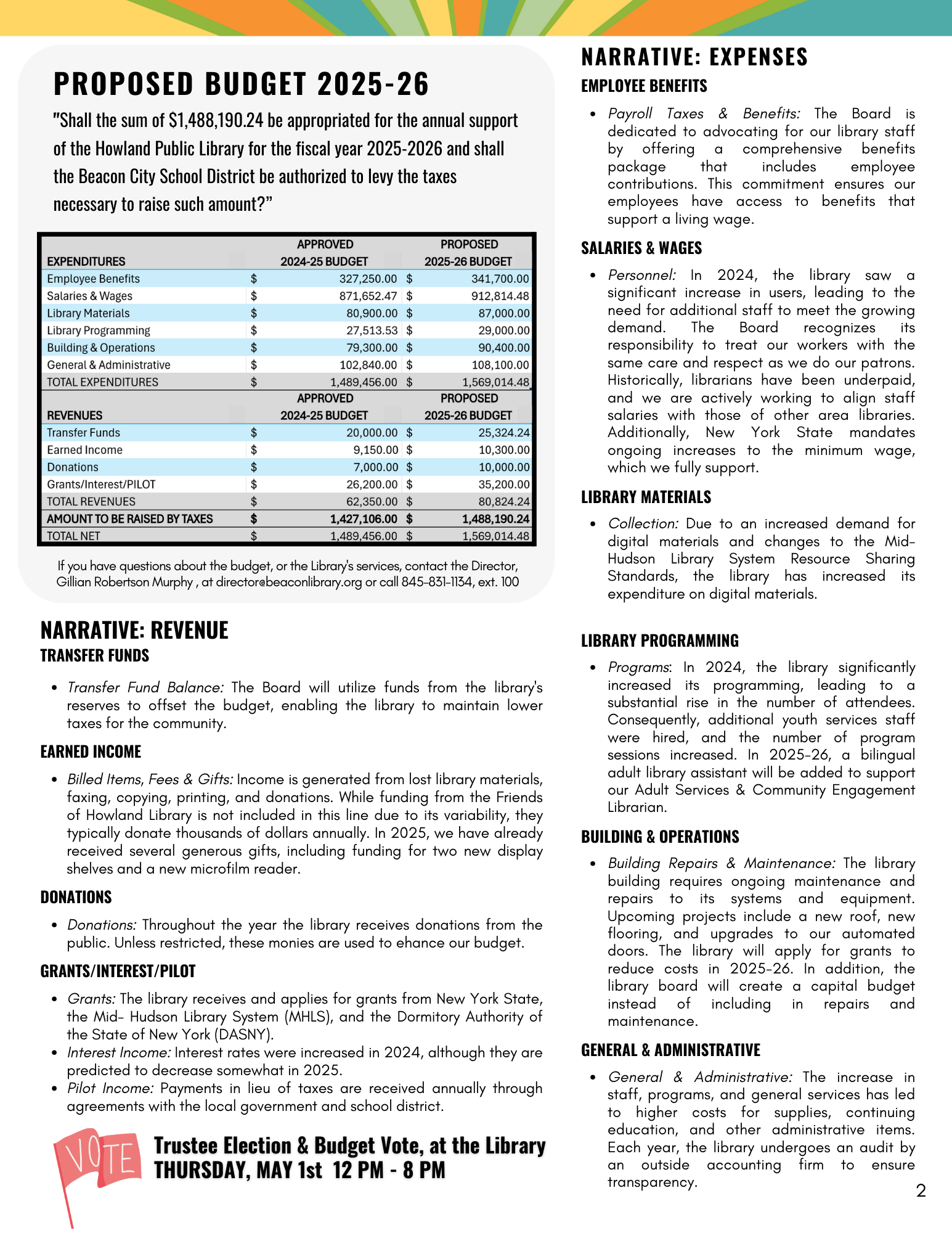 Libraries are free to use but not free to operate. The cost of ebooks and digital materials is higher for libraries than for regular customers. Rising costs of medical insurance, retirement, and New York State’s mandated minimum wage increases have significantly impacted our operating budget.